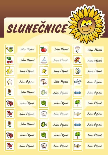 Značkovník "Slunečnice" v provedení klasická samolepka na PVC destičce tl. 5 mm.